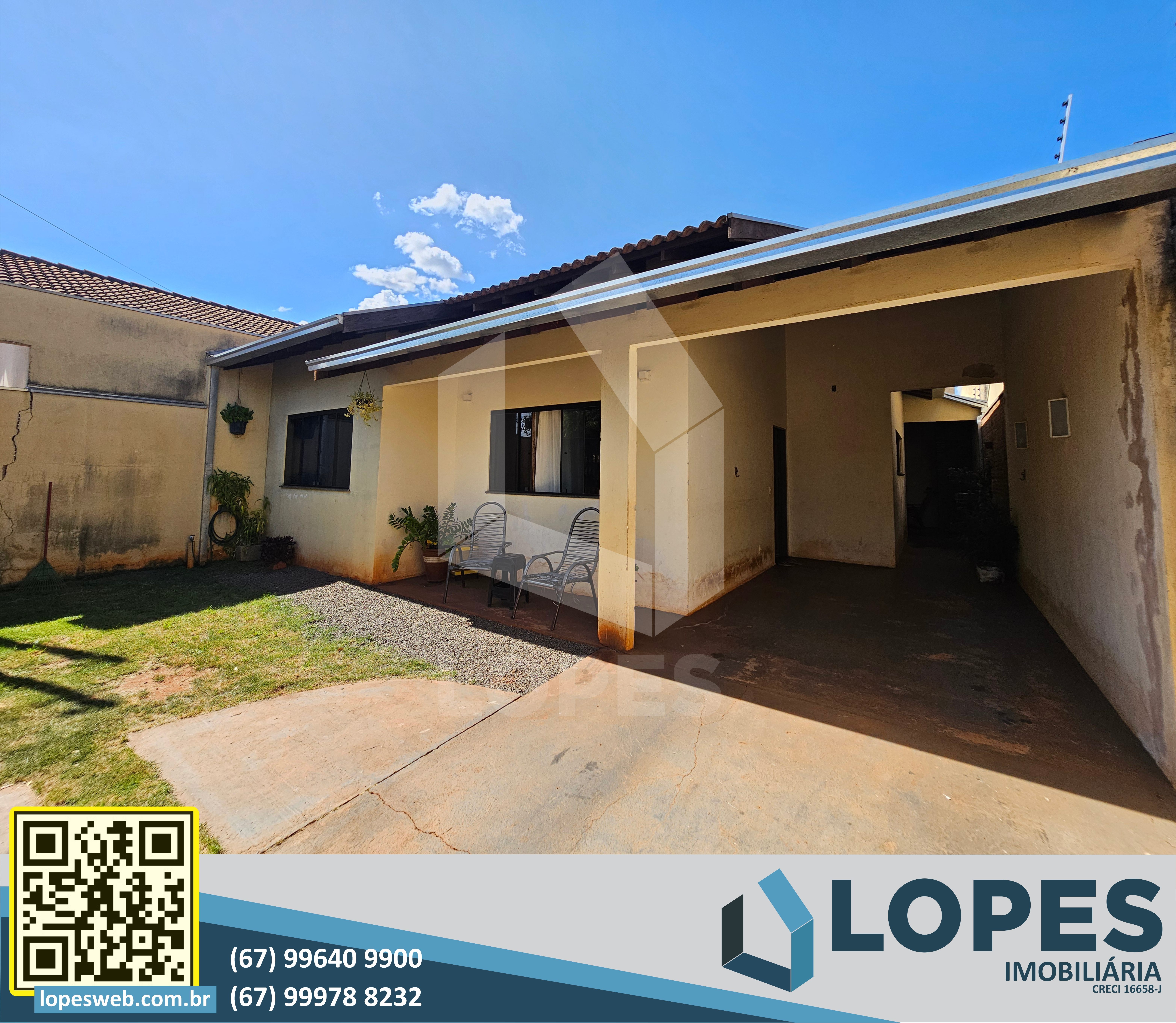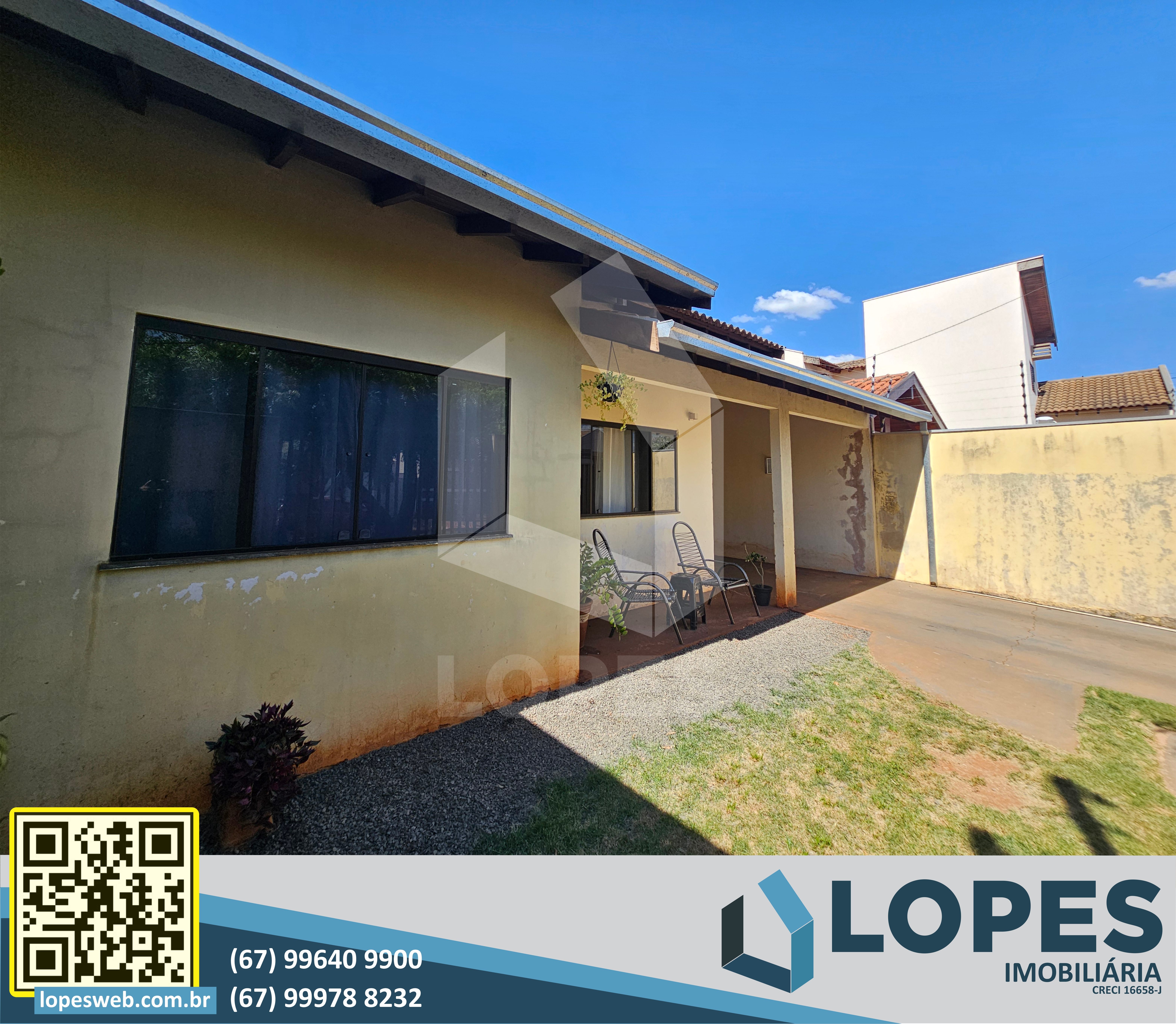📢 Casa localizada em um dos melhores bairros da cidade (próxima da Sanesul). Possui suíte mais dois quartos. Piso de porcelanato. Telhado aparente com telhas de concreto. Banheiros com box de vidro temperado. Área de lazer espaçosa com churrasqueira, pia e lavanderia fechada. Apta para financiamento habitacional.